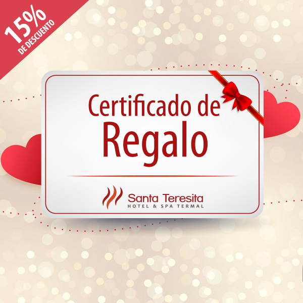 Regala una velada única de relajación y confort con un certificado que incluye: 2 ingresos a Noches ST, 2 masajes relajantes de 60 minutos, 2 toallas y 2 deliciosos smoothies. Es la experiencia perfecta para compartir momentos especiales en un ambiente de serenidad y cuidado. Sorprende a tus seres queridos con un certificado de Santa Teresita Hotel y Spa Termal. Elige entre envío digital o físico, ¡y crea recuerdos inolvidables!